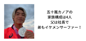 五十嵐カノアの家族構成は4人:父は社長で弟もイケメンサーファー! 東京オリンピックで銀メダルを獲得したサーファーの五十嵐カノアさん。 サーフィンがオリンピック競技になって、初の銀メダリストを育てた両親や家族について調査しまし...